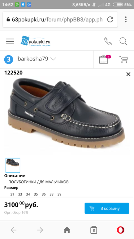Да для Паблосски нормально, вроде, в магазине дороже. Я люблю их обувь, нужно ещё повыбирать, коллекция большая у них. Без этой вот мощной подошвы Лешке не понравилось, он вообще мокасины не любит, а я зачем-то решила спросить его мнения, хотя сама всё сама выбираю))
