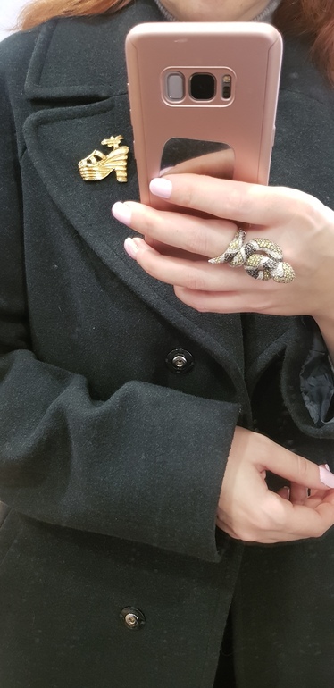 Да, брошь очень интересная, я когда её увидела, влюбилась, хотя брошки не ношу. И не очень дорого стоила. Кольцо это подарок мужа на 10 лет брака. Два года назад ещё.