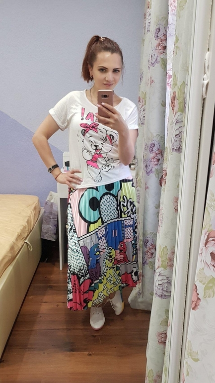 А это из серии, как я люблю "городская сумашедшая" 🤣🤪👻 Цыганка Сэээраааа 🙈🤣🤣🤣 Но знаете, я буду её носить. Она очень необычная и вообще не мнётся. Синтетика конечно махровая, но яркая и сшита тоже вполне себе. 1 017,78 руб. 24%СКИДКА | Marwin/Новинка 2019 года, Весенняя плиссированная юбка в европейском стиле с рисунком героев мультфильмов, высокая эластичность, уличный стиль, трапециевидная Рождественская юбка до середины икрыhttps://s.click.aliexpress.com/e/cOkSsg4E