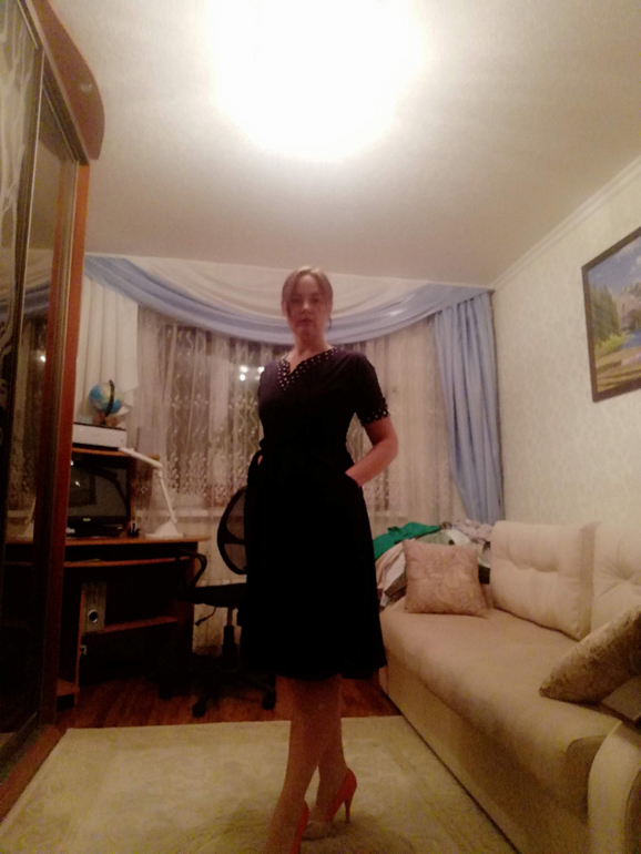 Купите синее или красное платье футляр из плотной ткани. Будет отлично!100%
