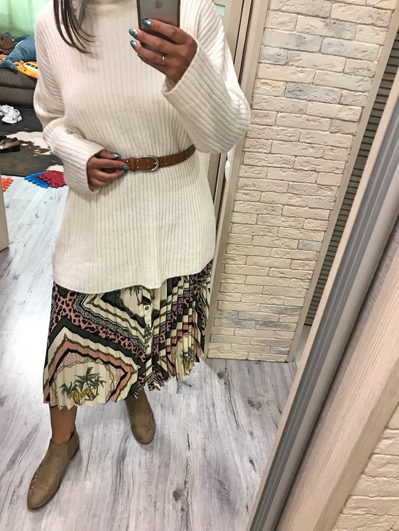 Свитер ещё можно с юбкой и пояском