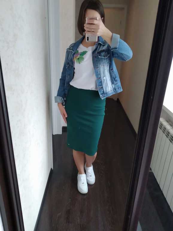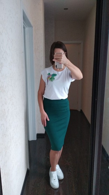 Юбка бомба! Сидит оч круто! Футболку выправить и заправить только кусочек спереди👌