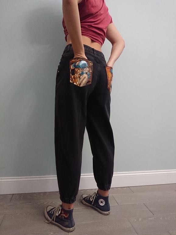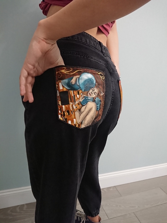 девушке повзрослее вполне можно носить картинку, но на не попе, а на спине! Тем более, если картина от своей же дочери! я бы носила и гордилась! на спине джинсовой куртки :) и мне 40 :)))