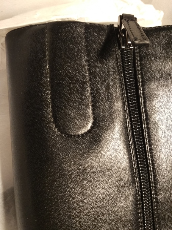 ПосоветуйтеМерила вчера сапоги. Очень понравились, последняя пара со скидкой 80%, размер мой, все хорошо, но! С трудом застегнула на своей в общем то скорее худой икре. Сначала думала, модель такая. Пригляделась, и поняла, что дело не в модели. На внутренней стороне голенища сапог есть выделенное место (фото под кат) для резинки, которая регулирует объем. Самое смешное, что резинка внутри тоже есть (ее видно сверху). Вот только саму кожу забыли разрезать, чтобы резинке было, куда растягиваться...В магазине пожимают плечами, мол, хотите, не берите. Я в сомнениях.... Может есть вариант самостоятельно или в обувной мастерской это исправить и прорезать кожу, чтобы резинка давала сапогу садиться по икре? Или это сложно, как думаете?