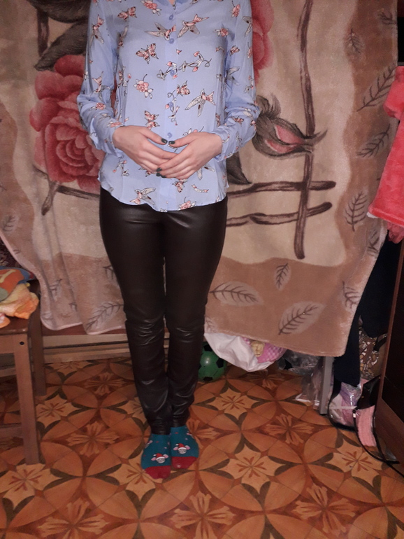 Если честно ничего не понравилось, кожаные брюки я бы смотрела прямые высокие либо на кулиске, эти если только с каким-то объемным длинным верхом! Блузка очень хлюпенькая на вид и смотрится по детски, и плюс я бы искала более прямого кроя, Платье очень аляпистое и Вам не по типажу!!! Я бы поискала ещё варианты платьев и блузок....