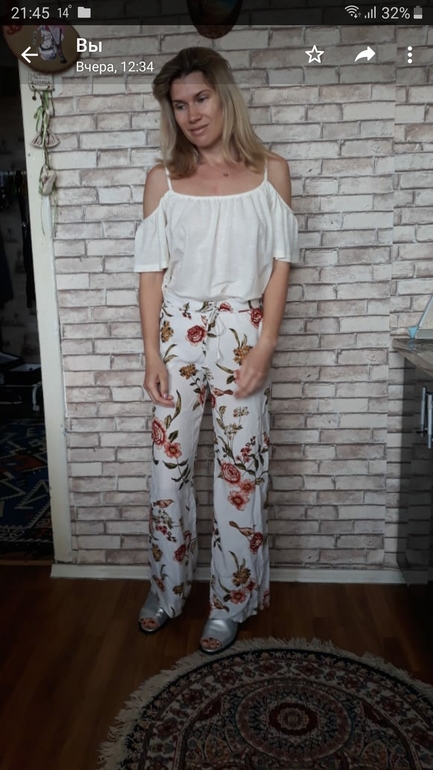 мне на вас очень понравились первые шорты, комбез отлично и летние брючки с цветами :) К ним бы не такую блузку и просто белый шелковый топ без рукавов! Будет идеально! А то на штанах цветочках, на блузке оборочки и те висят :)