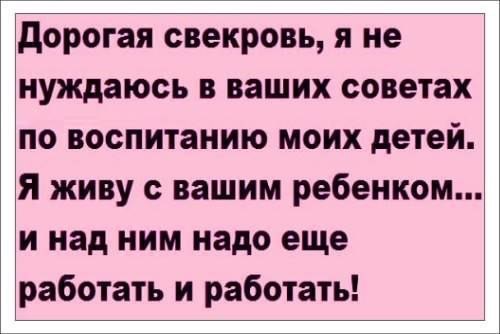 Юмор связанный со свекровью.девочки, привет! Вот про тещ много анекдотов. Про свекровей думаю тоже есть, но они как-то не в ходу. Сама знаю один: