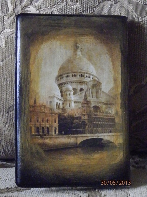 На крышке грунт, картинка из журнала, лак акриловый, акриловые краски, лак
