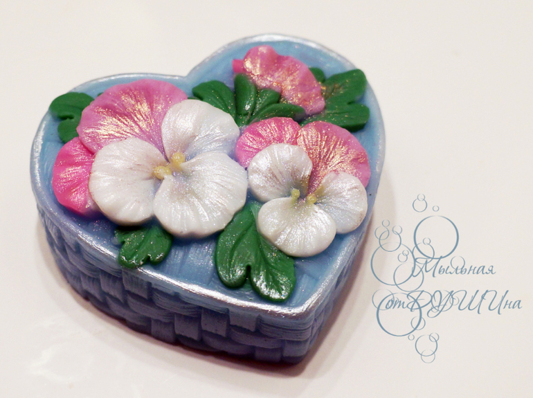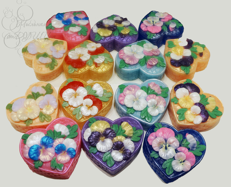 Мыло из основыКогда-то, в начале мыловаренного увлечения, помню, как мне хотелось форму анютиных глазок! И хоть у меня с тех пор появилось много разных форм, заливать анютины глазки не надоедает никогда!