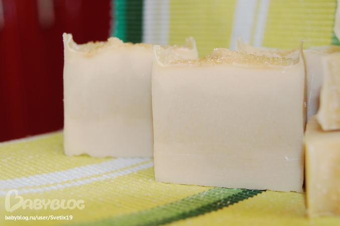Мыло в гель не вошло, что для меня загадка. Сколько я читала рассказов про молочное мыло, везде пишут, что оно чуть ли не сразу же в гель уходит. И нужно скорей оставить в морозилку. А я просто на балкон вынесла, там градуса 2-3 тепла. Правда, оно у меня там неделю простояло, ну так вышло.... в общем, светленькое получилось, не белое конечно, но все же:)