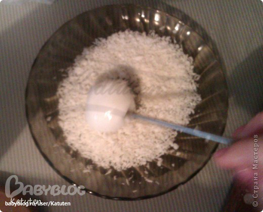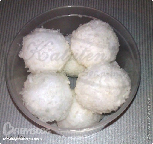 тут же обваливаем ее в кокосовой стружке. Так поступаем со всеми конфетками.