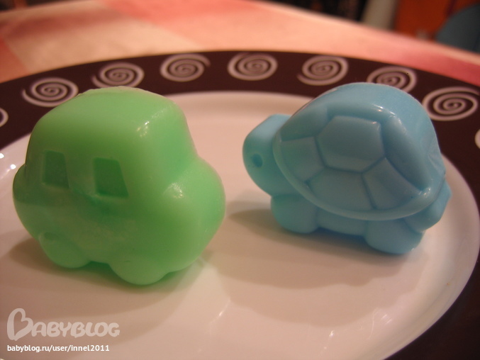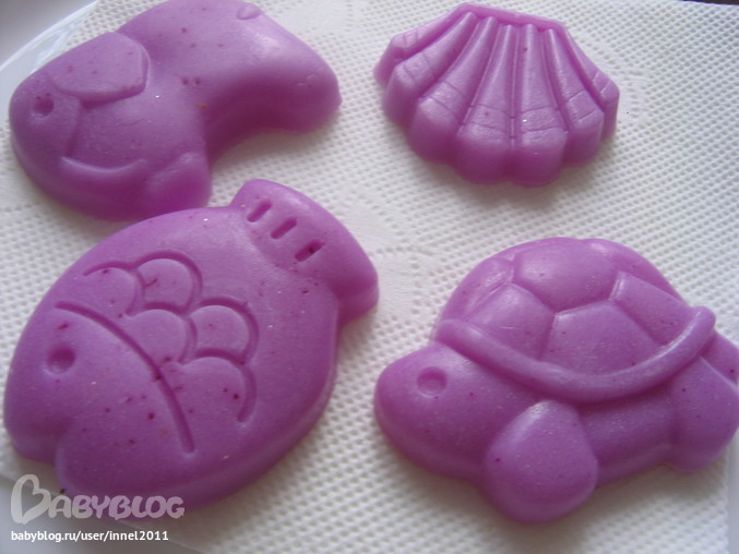 Мыло из основыУ меня есть набор силиконовых форм, с помощью которого получаются забавные мини-мыльца, я обычно готовлю такое мыло для своего сына! В полтора года он обратил внимание на это мыло, научился сам мылить руки, теперь у него есть своя мыльница с мини-мыльцами, только для него)))кстати, он называет его нежно "мими")
