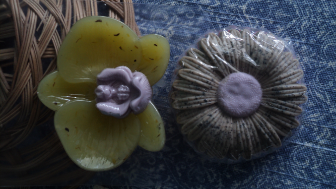 Орхидея: органическая мыльная основа, добавлины цветки календулы, предворительно заваренные кипятком, базавое масло - чистотел, эфирные масла: жасмин, жможевельник, илинг-иланг, кипарис.