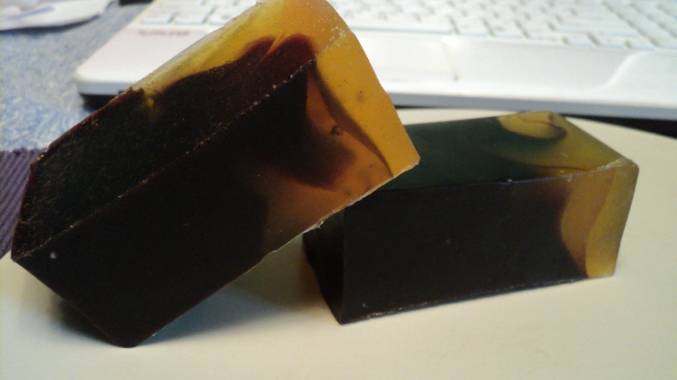 состав: белая основа с козьем молоком, горький шоколад, какао порошок, ваниль, базовое масло миндальное + прозрачная основа бозовон масло облепиха, цветки календулы