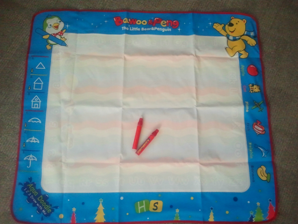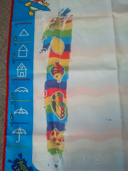 Было приобретено: писуар, коврик для рисования водными карандашами, говорящий кот Том,кроссовки старшему