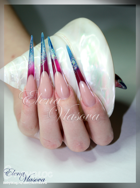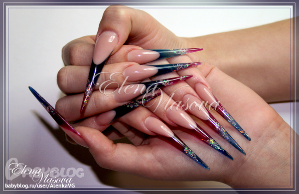 Форма ногтей СтилетРедко делаю стилеты, на такую длину экстрималов не много. Вот что получается, когда находится желающая и присутствует вдохновение, навеянное работой Наташи Никишиной.