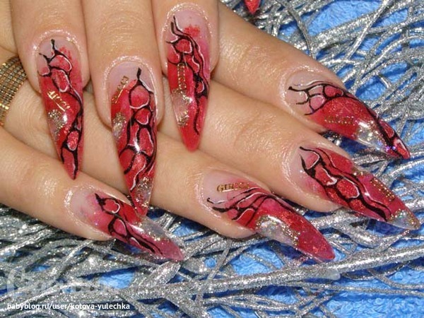 1.Хотелось бы научиться вот такому дизайну. Может у кого-то есть ссылочки на мастер-классы? А именно интересует как эти линии черные рисовать? Я даже видела и красивее, но фото нашла только такое. т.к. даже не знаю как он называется..