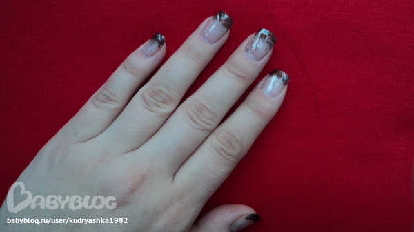 у меня пока нет зажима, что бы зажимать ноготки, вообще люблю френч но самой себе красиво боюсь не нарисую, так что пробую...