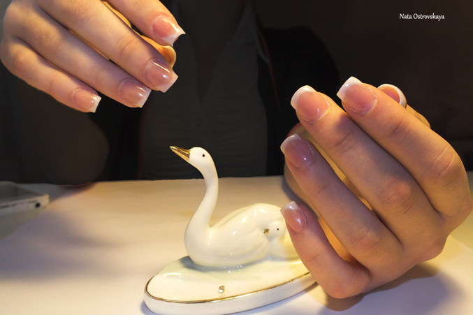 Френч (белый и цветной кончик)Моя первая модель) своя ногтевая пластина у неё ооочень широкая. Я сначала думала что поджать их вообще не получится или девочка будет пищать от боли:) Но поджались они легко(на сколько поджались, грубо говоря)и ей совсем не больно) Вторая сложность заключалась в длинне: Мне на ,,ЕДЕНИЧКУ,, пожалуйста... В общем, смотрите сами