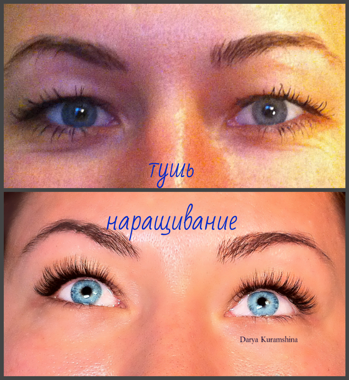 Ну и небольшой коллажик для тех, кто продолжает сомневаться, кто считает, что и тушью красиво накрасит))) Разница между фото 3 часа!!!
