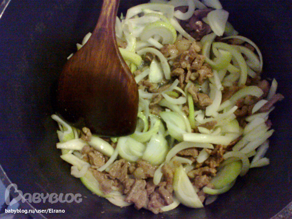 Теперь накаливаем в казане масло и на большом огне жарим в такой последовательности