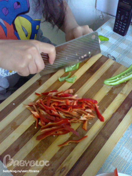 Мясо режем тоненькими лепестками вот так примерно