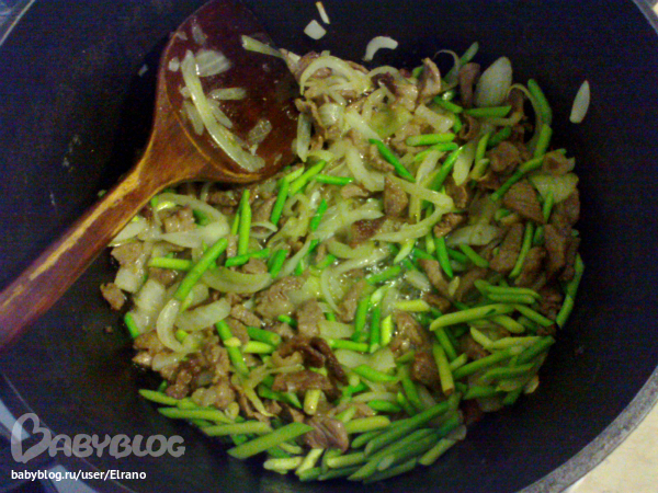 мясо, бросаем начинаем сразу мешать чтоб не прилипло ко дну,солим, так как оно у нас тоненько нарезано прожарится оно быстро, жарим помешивая, пока масло не станет прозрачным, затем лук..прожариваем с луком, дальше чесночные стрелки. прожариваем минуты 3-4, (все делается помешивая, на большом огне),затем 2 столовые ложки томата с горкой, можно даже 3...хорошенько прожариваем с томатом, потом добавляем стручки фасоли и стручки джондо и сельдерей(стебли нарезанные наискосок в моем случае стеблей не было у меня листья и стебельки), мешаем жарим минуты 3, потом перец болгарскии вместе с полугорьким, в конце нарезанную квадратами китайскую капусту (у меня не было муж забыл купить))))), все мешаем не долго, минут 5-7, овощи должны быть в итоге полухрустящими....заливаем водой, по вкусу, кто как любит...я заливаю по уровню овощей(фото ниже), даем вскипеть, досаливаем и через минуты 2 выключаем..подлив наивкуснейшии остренький готов)))
