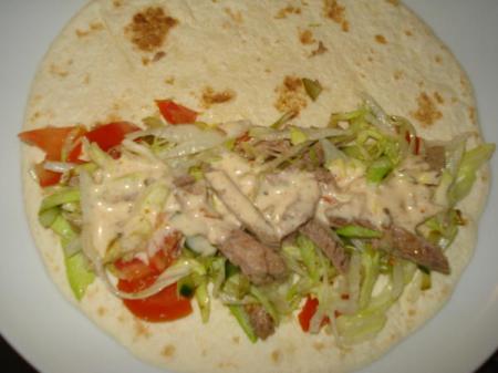 Покупаются лепешки "Тортильяс"( ну или какие найдутся похожие, я не знаю как на русском, мы их в мексиканском магазине покупаем) ,режутся овощи,готовится соус,и..не надо нам никаких донов кебабов из ресторанов..Чем мы хуже стамбульских "дюрюмщиков" на Истикляле:)