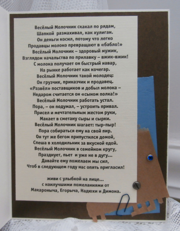 стихи нашла в интернете, но больше половины переделала под именинника, он у нас работает начальником молочного отдела на центральном рынке.