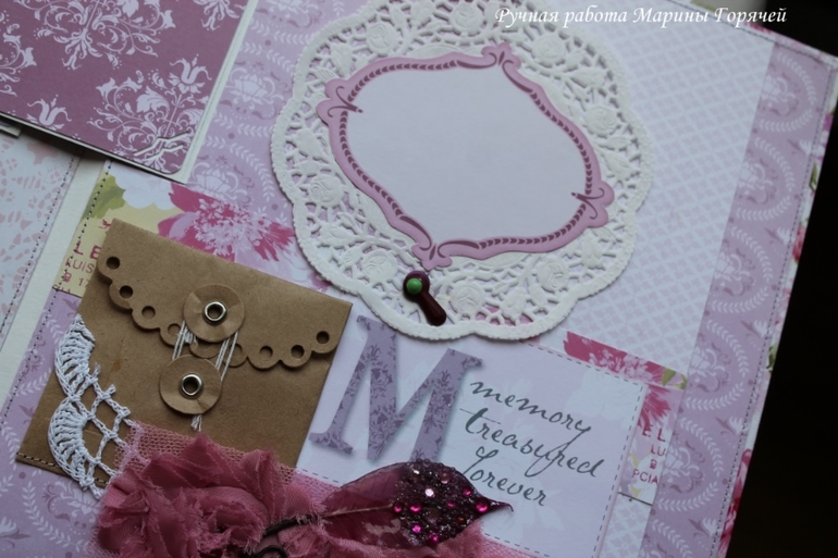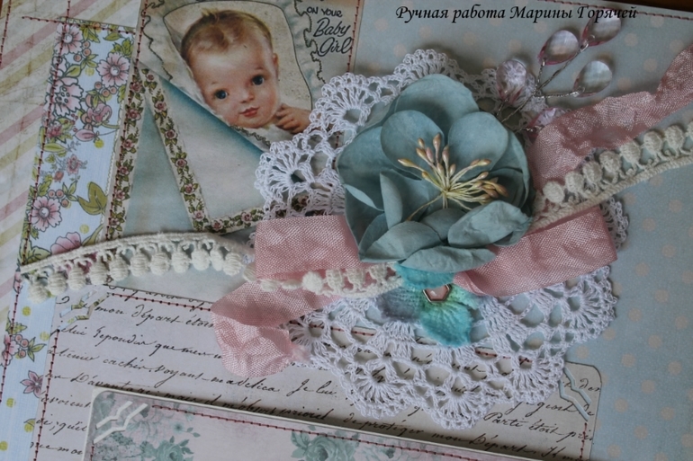 Но это еще не все). Сейчас я работаю над альбомом для новорожденной девочки, которым тоже вскоре с вами поделюсь. А вот фрагмент одной из страниц: