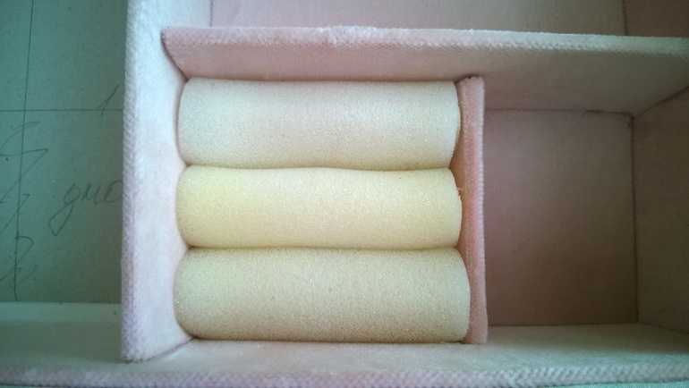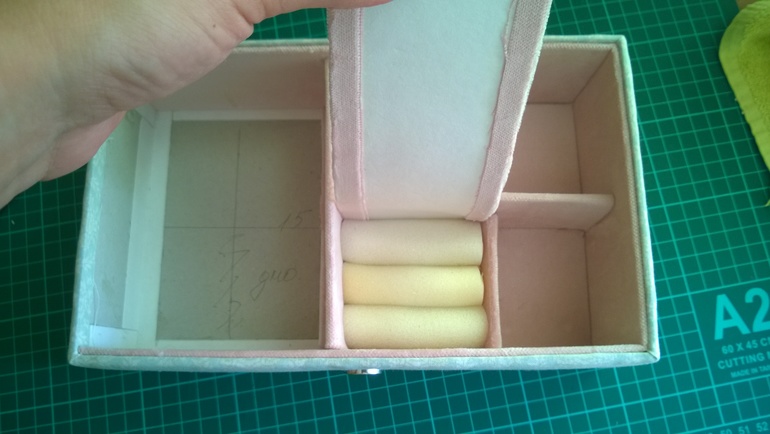 в этой коробочке я не прослаивала атлас синтепоном, просто натянула и все.