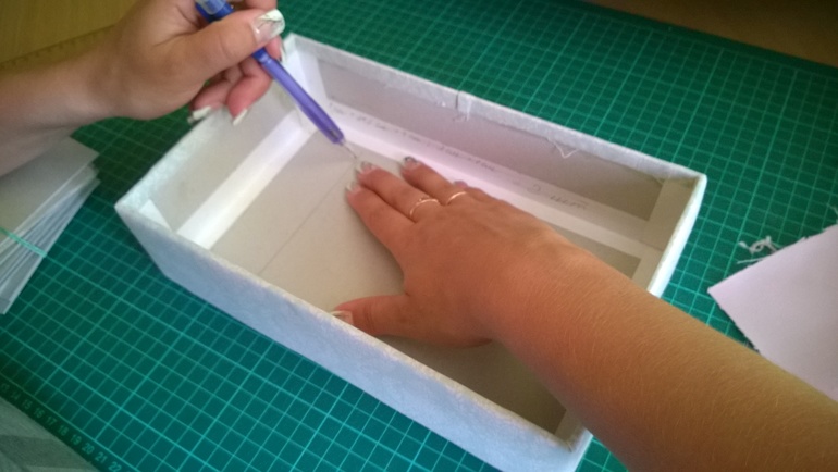 Сейчас самое время расчертить перегородки. Это можно сделать с помощью линейки и маленького картона.
