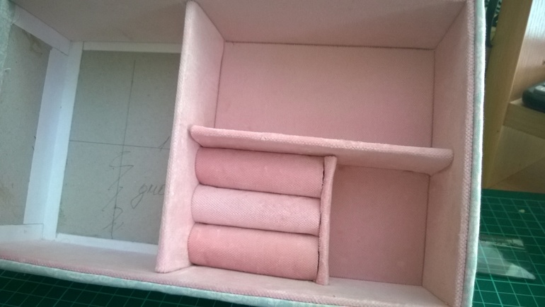 НО!!!!! если вы будете делать ленту, то возле той стенки, где она будет крепиться - ничего не делай, я обычно там делаю отделение для колец. Эту часть мы сделаем в самом конце. если ленты не будет - можете заполнить весь короб перегородками и донышками.