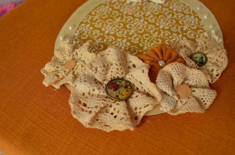 спасибо) Цвет любимый мамин)) а цветочки сделаны из белого кружева, которое я вымочила в слабом растворе кофе, чтобы предать такой потертый немного вид))