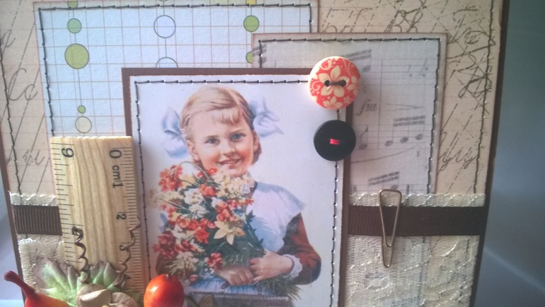 3) Открыточка. Размер 15,5 на 15,5 см.С полюбившейся мне картинкой. Идею с линеечкой позаимствовала у Светланы нашей)))