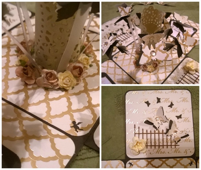 Пожелания у нее были по цветовой гамме, чтобы было много-много двойных бабочек и цветы в несколько ярусов! Потом она мне присылала сто фото, что в этой коробочке надо сделать снаружи так, а внутри как вон в той, а в другой как там и там, но немного не так, а вот так и далее в таком же духе.