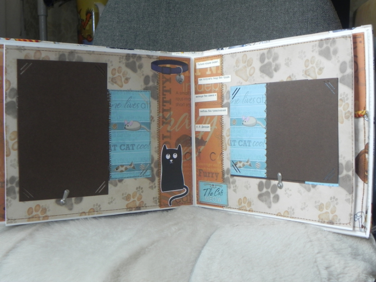 И еще покажу альбом про или о кошке. Размер 20*25, вмещает 40 фотографий размером 10*15. Украшений в альбоме минимум.
