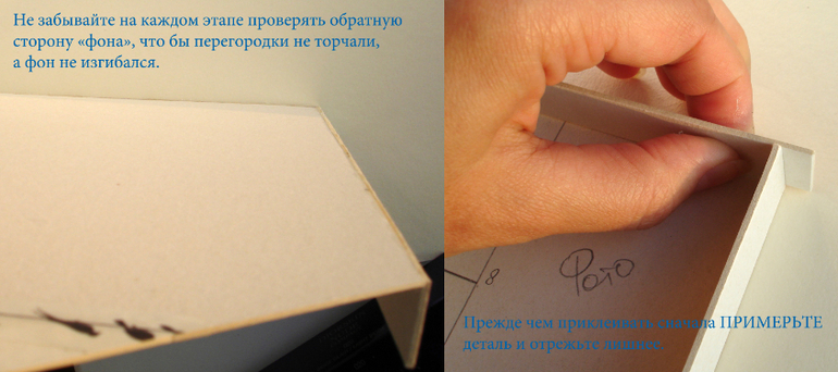 Итак, наш фон размечен, все лишнее отрезано, боковые перегородки нарезаны, начнем их клеить.