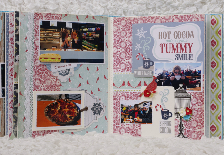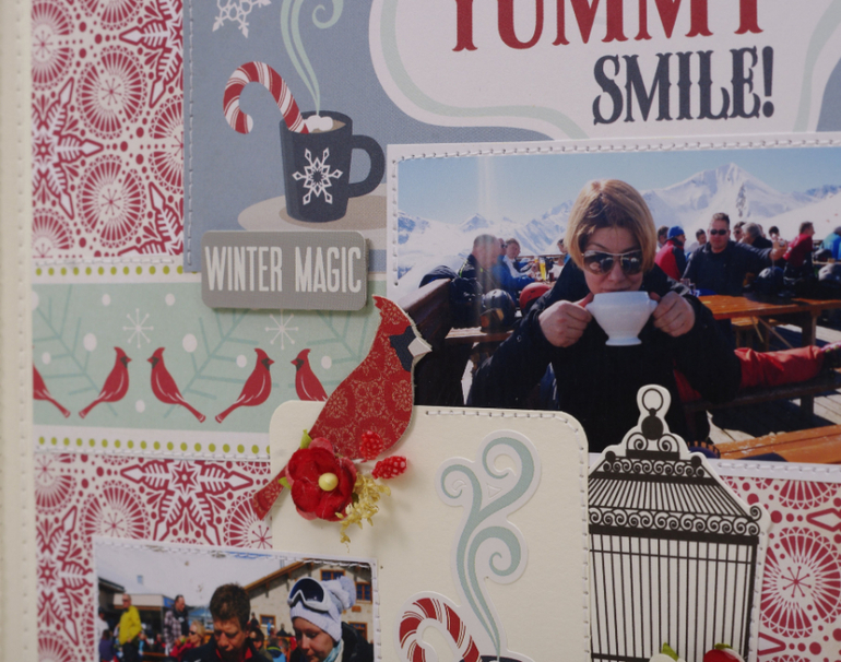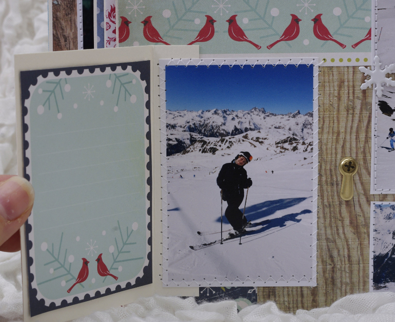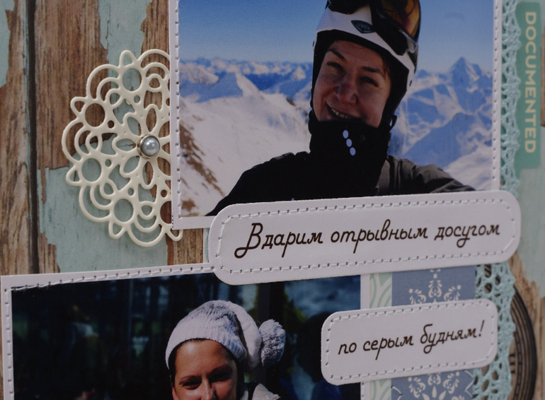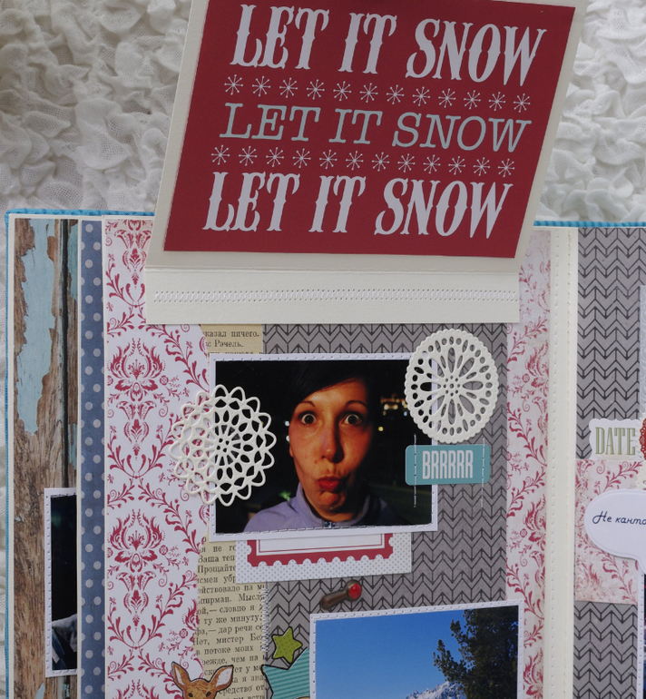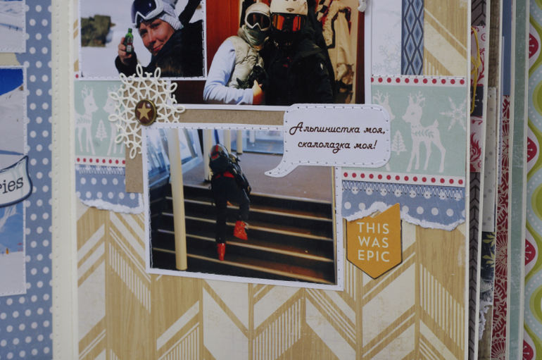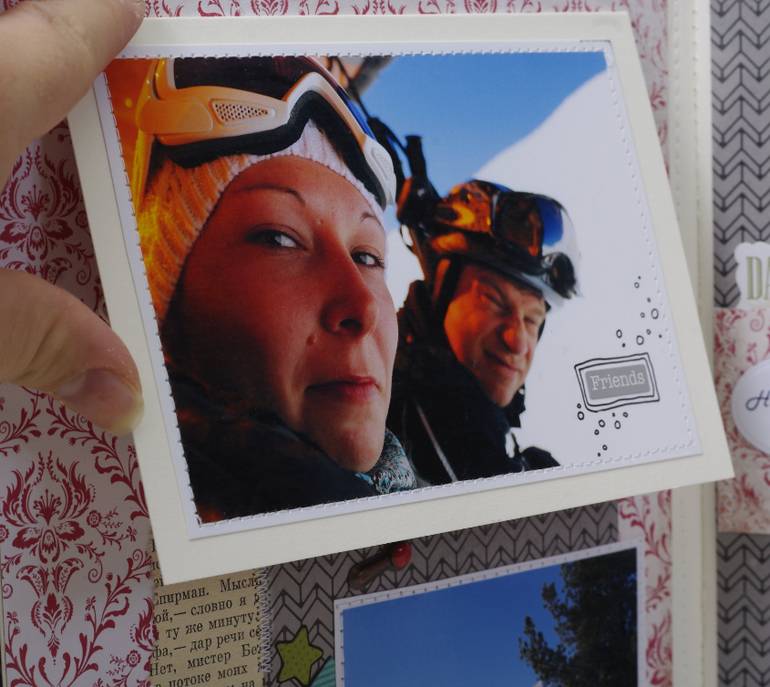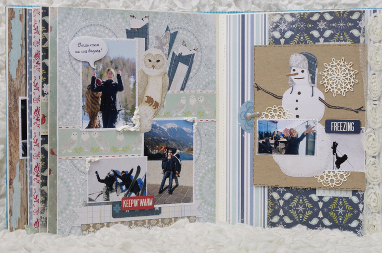 Просто чудесный альбом! Все фото смотрятся в нём гармонично. Но позволю себе мелкую критику-по такой обложке (детская ткань, узенькая шебби ленточка, оленята) невозможно и подумать какая внутри красота! Думала, что детский альбом про прогулки с санками. А тут горнолыжный курорт! Хочется кое-что слифтить, очень уж красиво.