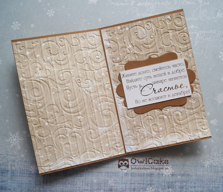 Внутри открытки морозное тиснение и согревающее пожелание.