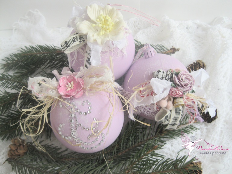 Я очень люблю Новый Год, ну думаю как и все )))) и мы всегда ставим дома елку, единственное мне совершенно не нравятся все эти новомодние игрушки, у меня у мамы советские старые игрушки... ммм...просто сказка...сосульки, огуречки, ягодки - КРАСОТА!!! У меня же получились вот такие интересные игрушки из обычных "китайских" шариков )))