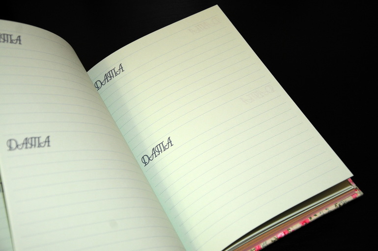 Блокноты разделены на 3 блока. Первый включает в себя датированные записи, второй - простая линовка, третий блок - чистые, не ограничивающие фантазию листы.