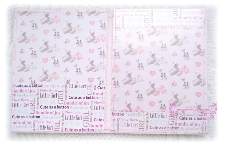 Хочу показать вам одну из последних моих работ. Пожеланими заказчицы было море нежности! Надеюсь, что воплотила все ее мечты в реальность))) Заказ состоял из набора для новорожденной девочки - альбомо-блокнота,папки для свидетельства о рождении и открытки, и еще 2 мини-блокнотика-брелока. Ну начну по-порядку. Нежнейший набор для маленькой новорожденной крошки.
