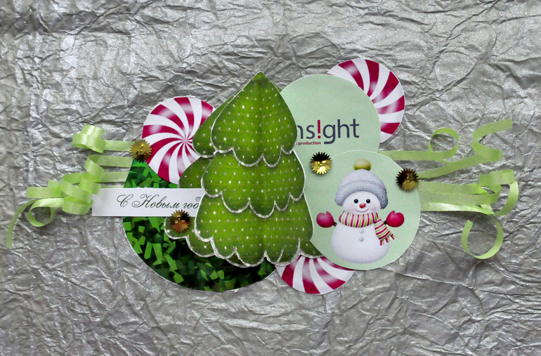 Елочка объемная, круг зеленый слева - из голографической бумаги.
