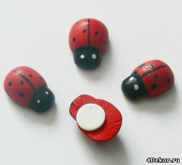 а божих коровок можно поискать в цветочных магазинах,они любят в букеты их добавлять,а потом просто перекрасить акриловыми красками))