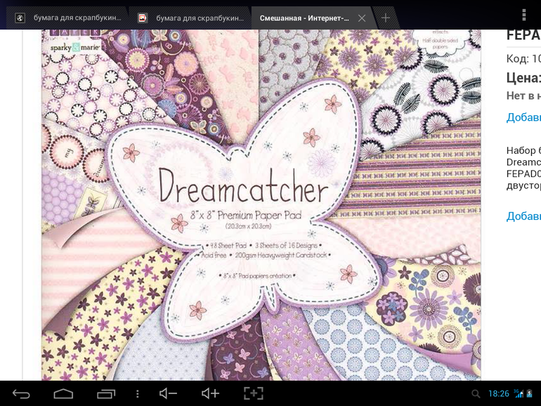Я тоже её заказывала, она мне очень понравилась. Уже заготовку для альбома сделала. А вдохновения как то нету, хотела посмотреть именно из этой бумаги работы, ни чего не могла найти.
