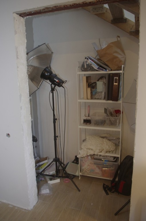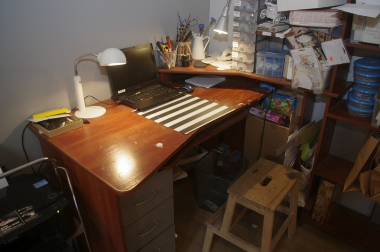 Рабочее место и система хранения материаловКто не знает - мы осенью переехали за город, продали квартиру, купили дом.