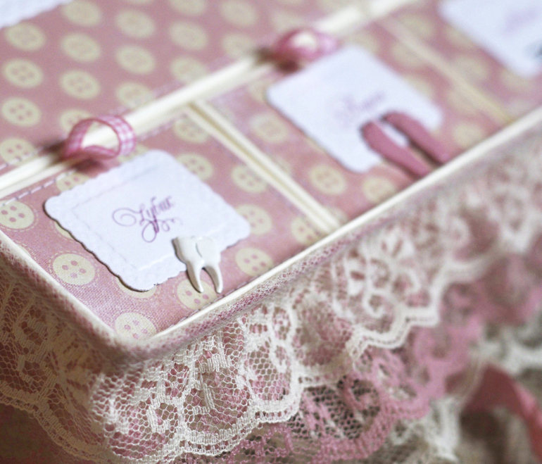 5 ячеек - для крестильного комплекта, соски, бирочки, локона и первого зубика.