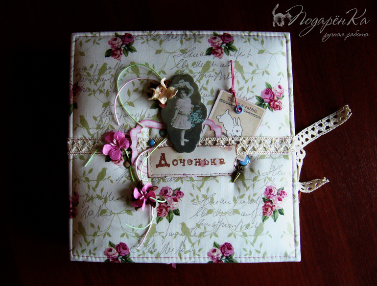 Альбомы ДетскиеХвастаюсь самым пухленьким вместительным и объемным на данный момент своим альбомчиком. У меня было просто огромное количество фотографий, и поэтому странички пришлось сделать сложные - с кармашками, конвертиками, секретиками и т.п. И мама и папа девочки увлекаются реконструкцией, поэтому постаралась сделать альбомчик повинтажнее)))