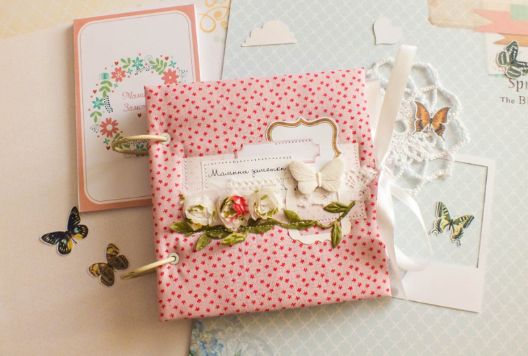 Блокнот на кольцах, что позволяет добавлять фотографии, памятные вещички и многое другое)
